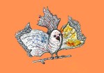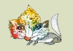 The next bit though was covering leaves in paint, then applying them to paper. It was very pretty in itself, then my pal Galia noticed a face in the drawing and started inking it it… This gave birth to the very first woodland creature.