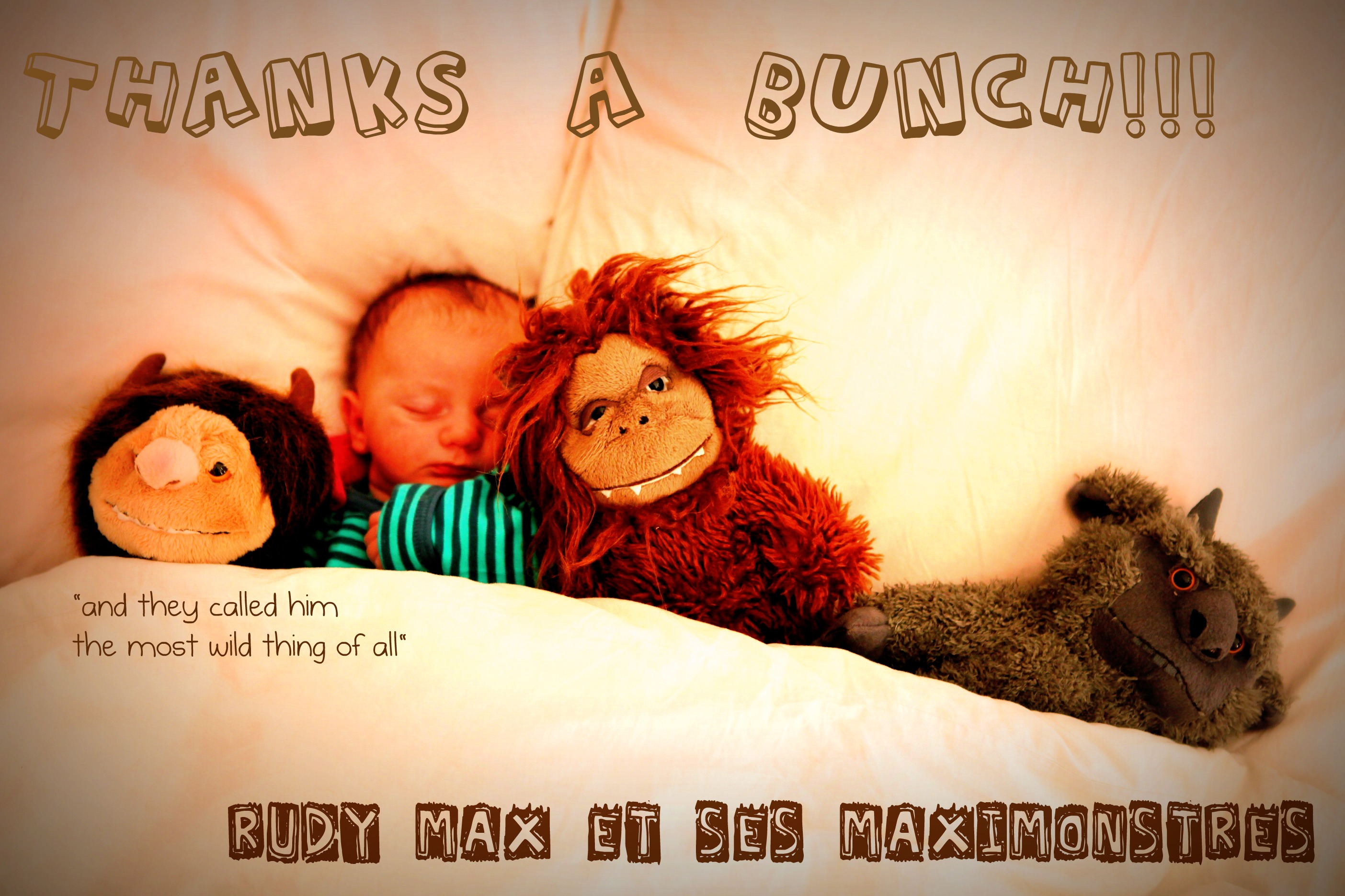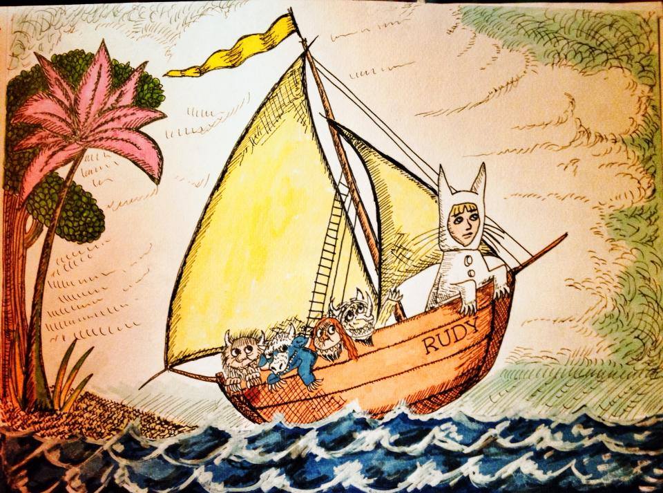 So this is my homage to the book and to my son, and here he is in situ with his monsters – embarking on roaring adventures – after all, they were already there when he made his first appearance in our lives…