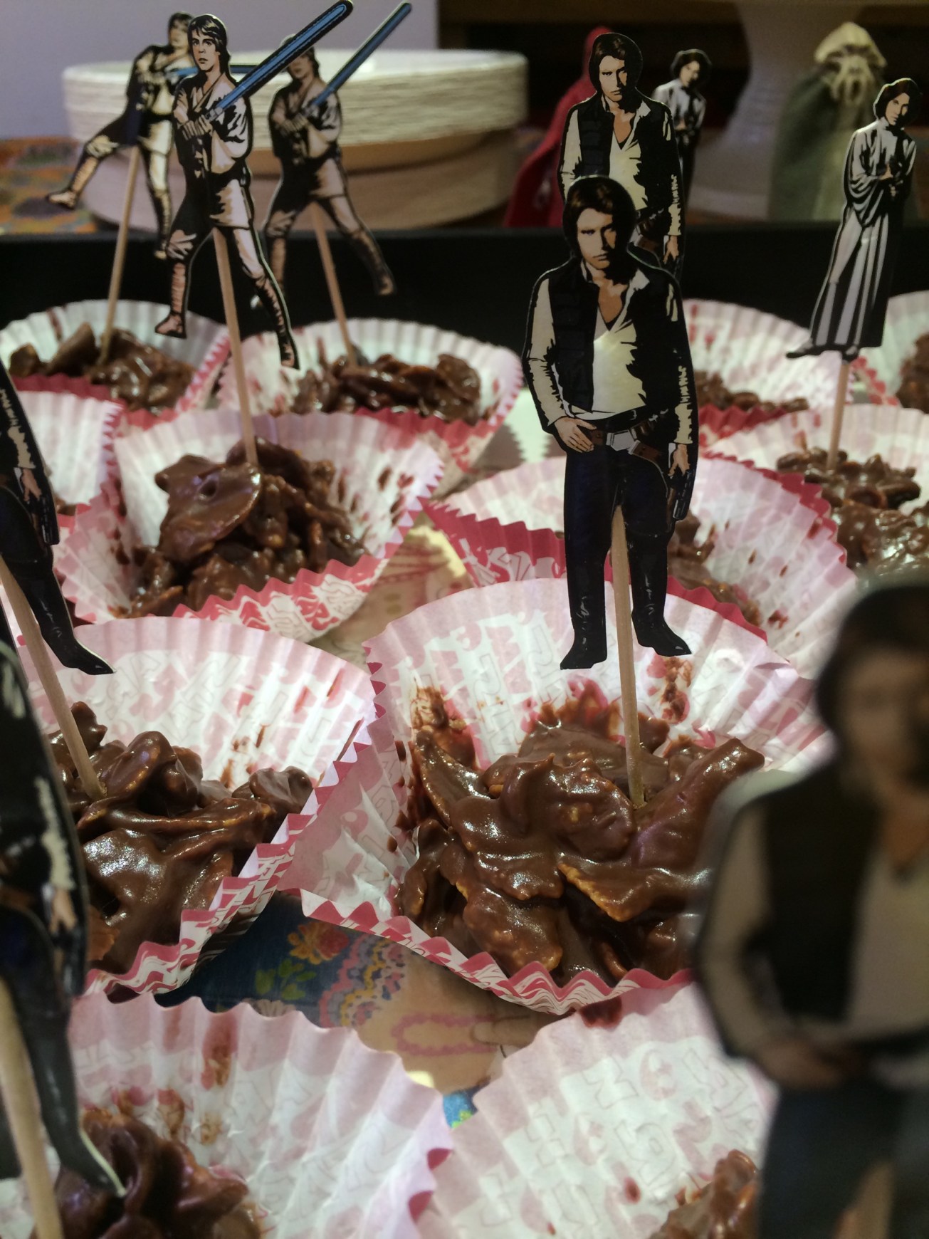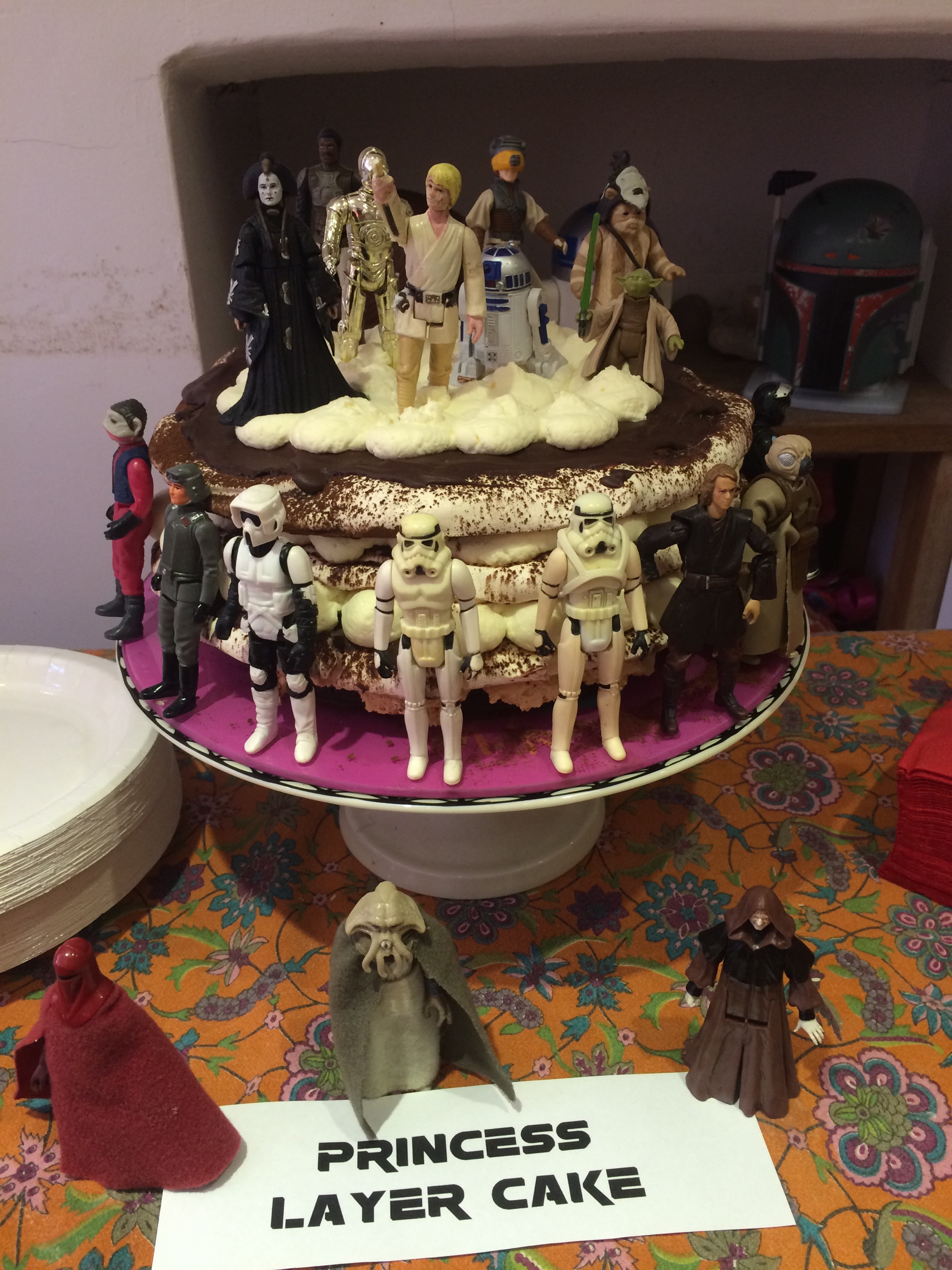 Rudy turned 4 last week, and we duly celebrated with a Star Wars party, complete with Marshmallow stormstroopers, Darth Vador pinata, grape lightsabres and a princess ‘layer’ cake (see what we did there?) to complete this interstellar extravaganza.