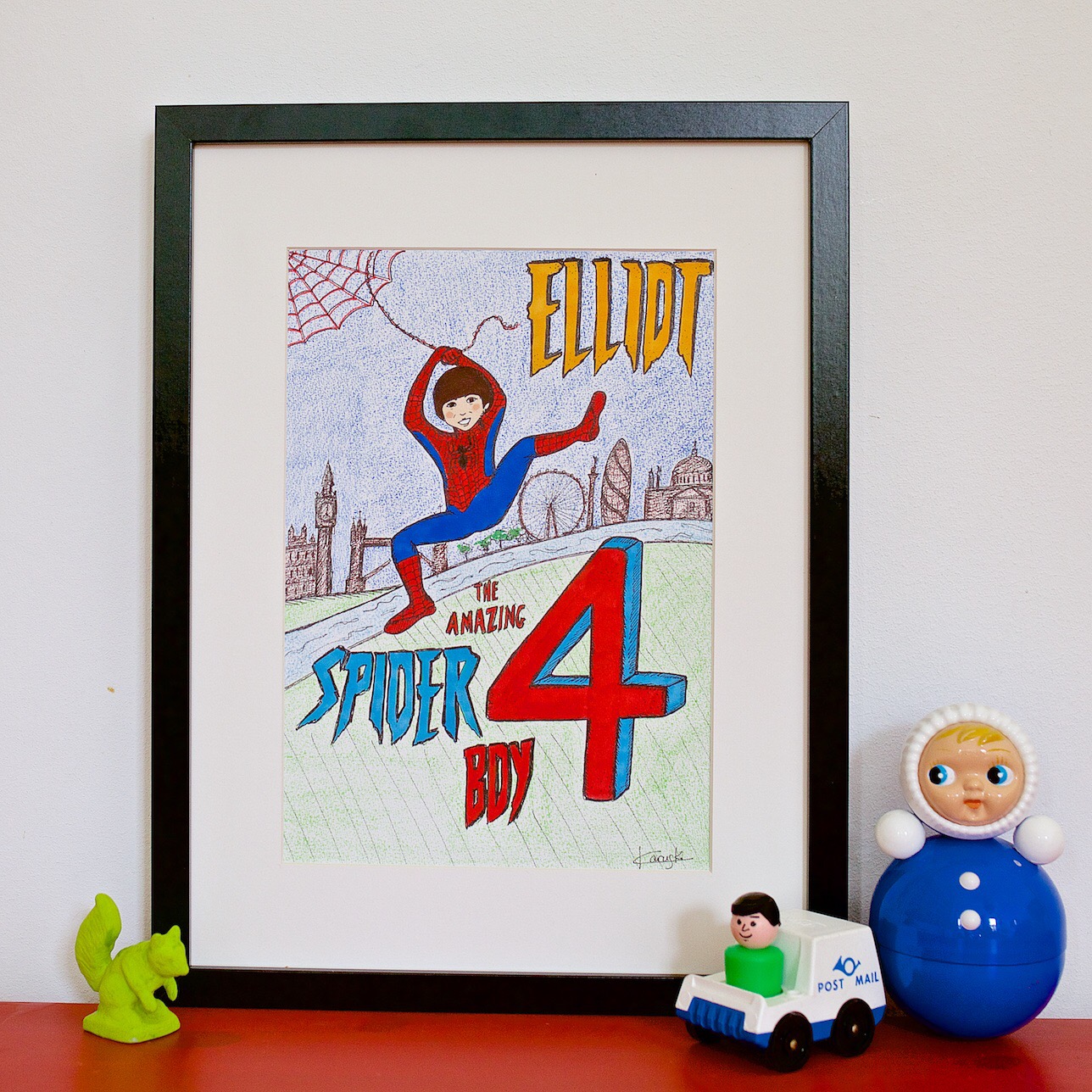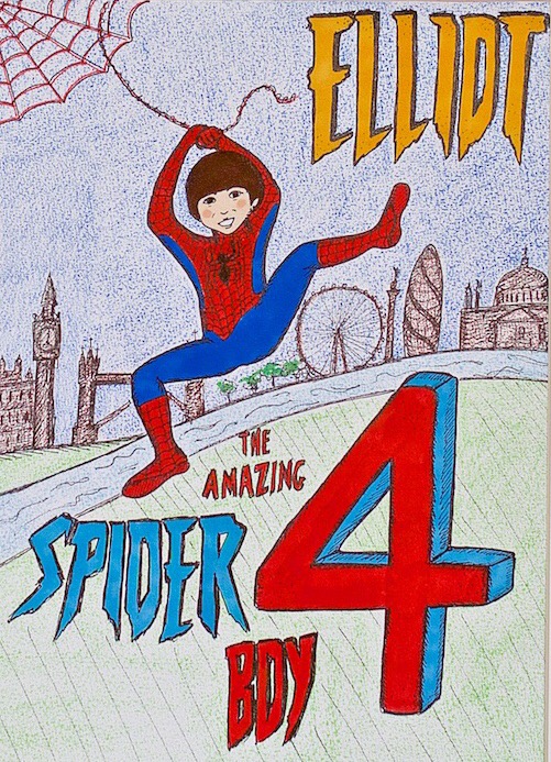 It’s my son’s best mate’s birthday – they are both obsessed with dressing up – and so i created this portrait of him in his favourite superhero costume.
