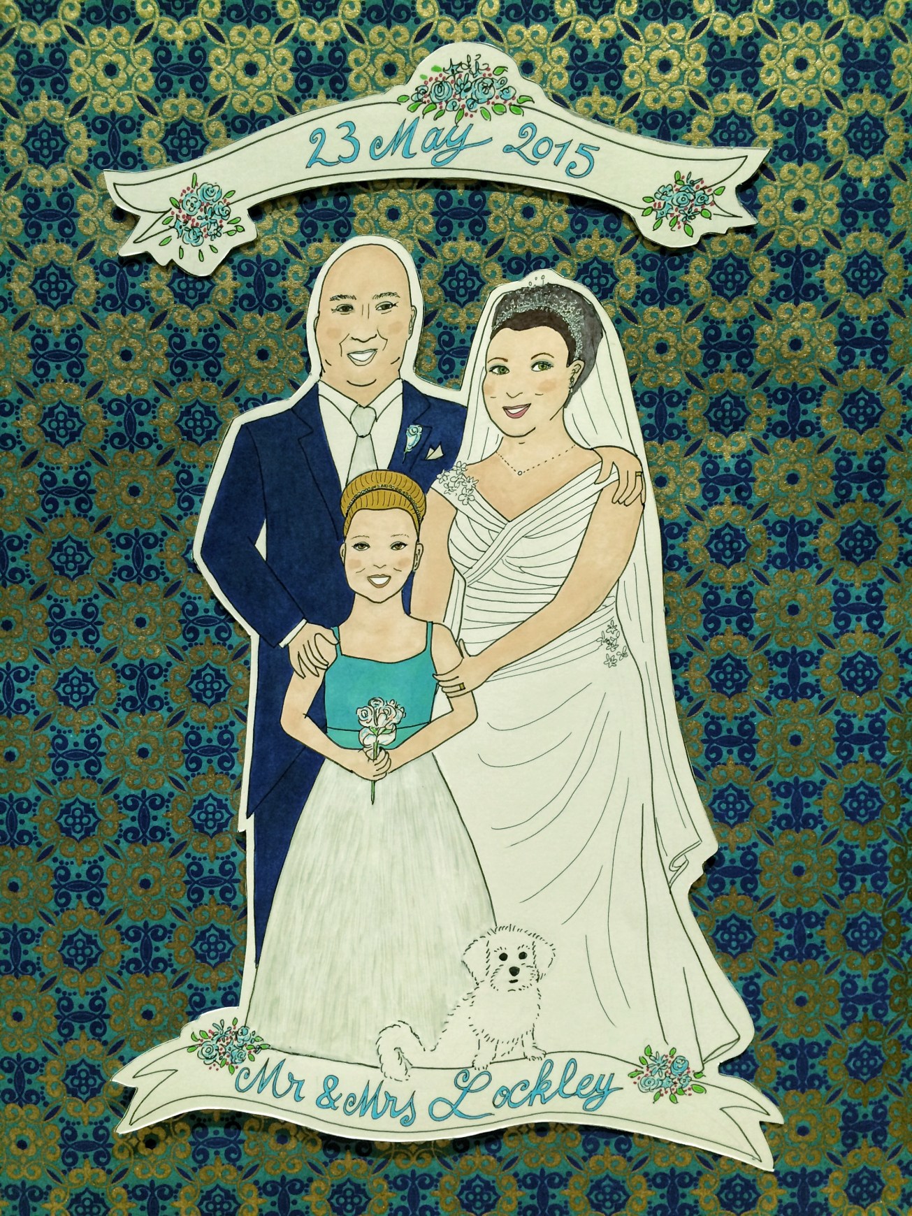 For one thing, secrecy is important, on all parts. After all, I was given access to wedding dress fitting pictures, make up and hair trials, tiaras, flowers, suits and such – more than most people involved in the wedding itself would normally get to see before the event! And then the challenge is to create a composite from all the information to match as closely as possible to what the happy couple will look like on the day. And as anyone who has been through this will know, there is a lot that can happen between planning and the day!