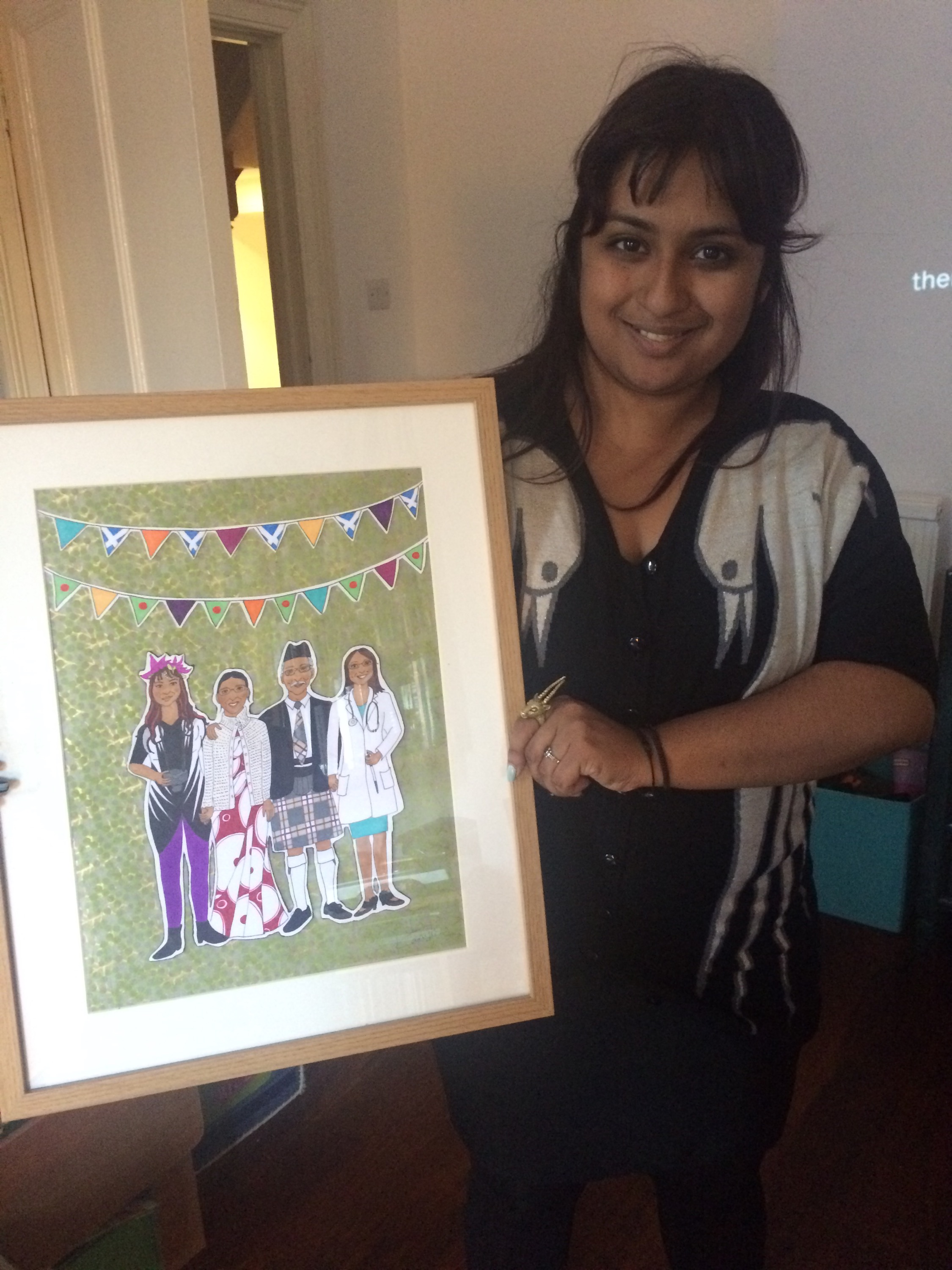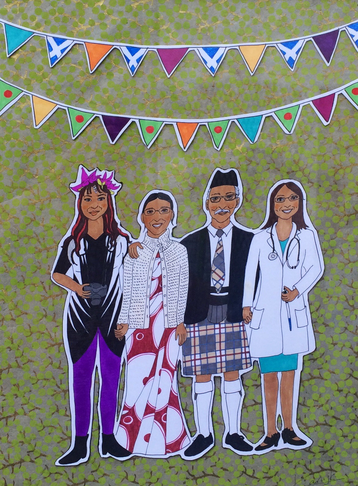 It was an absolute delight to work on this portrait for my friend Lameya – not least because it makes for a pretty stunning mix – her Bengali family living in Scotland allowed us to explore some serious cultural mash up with a kilted dad and a saried mum.